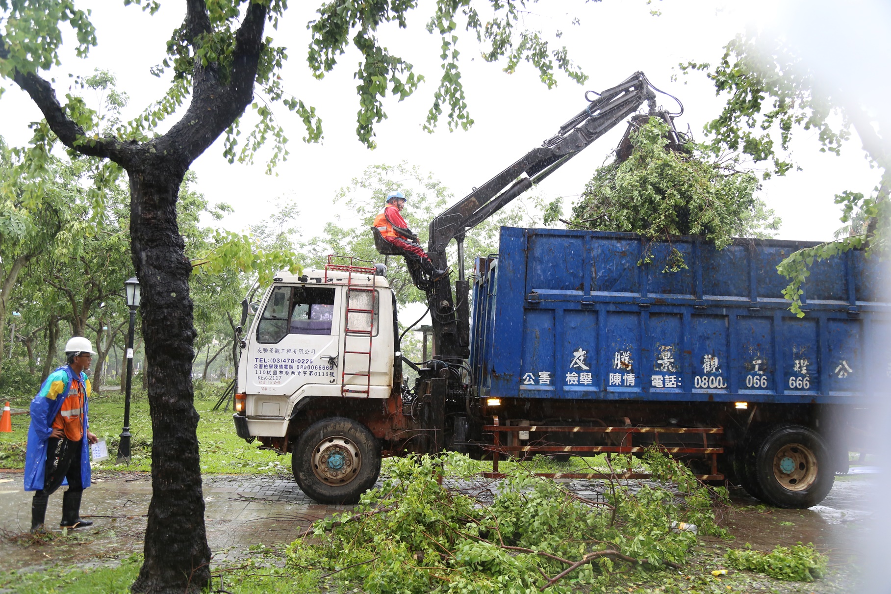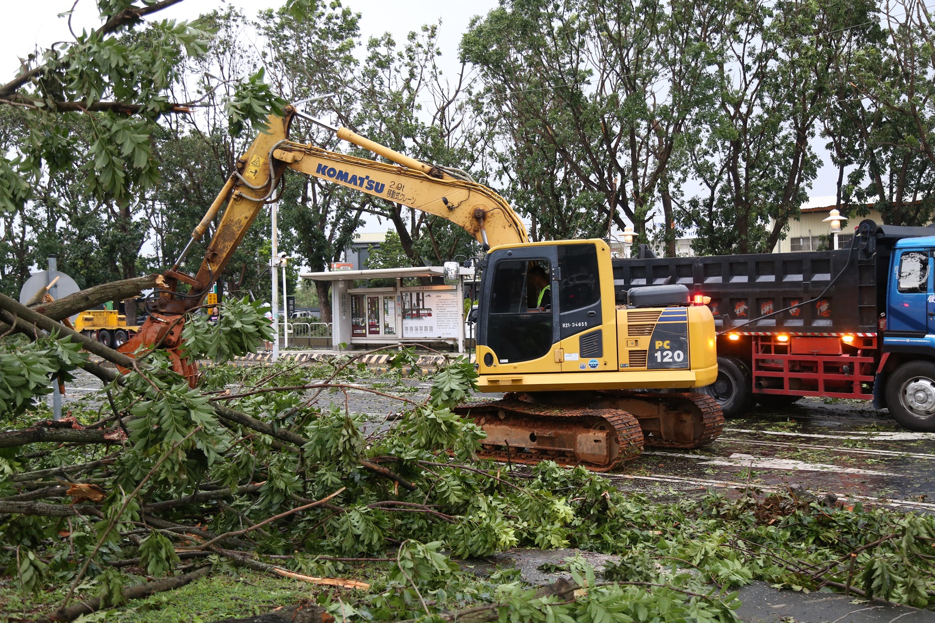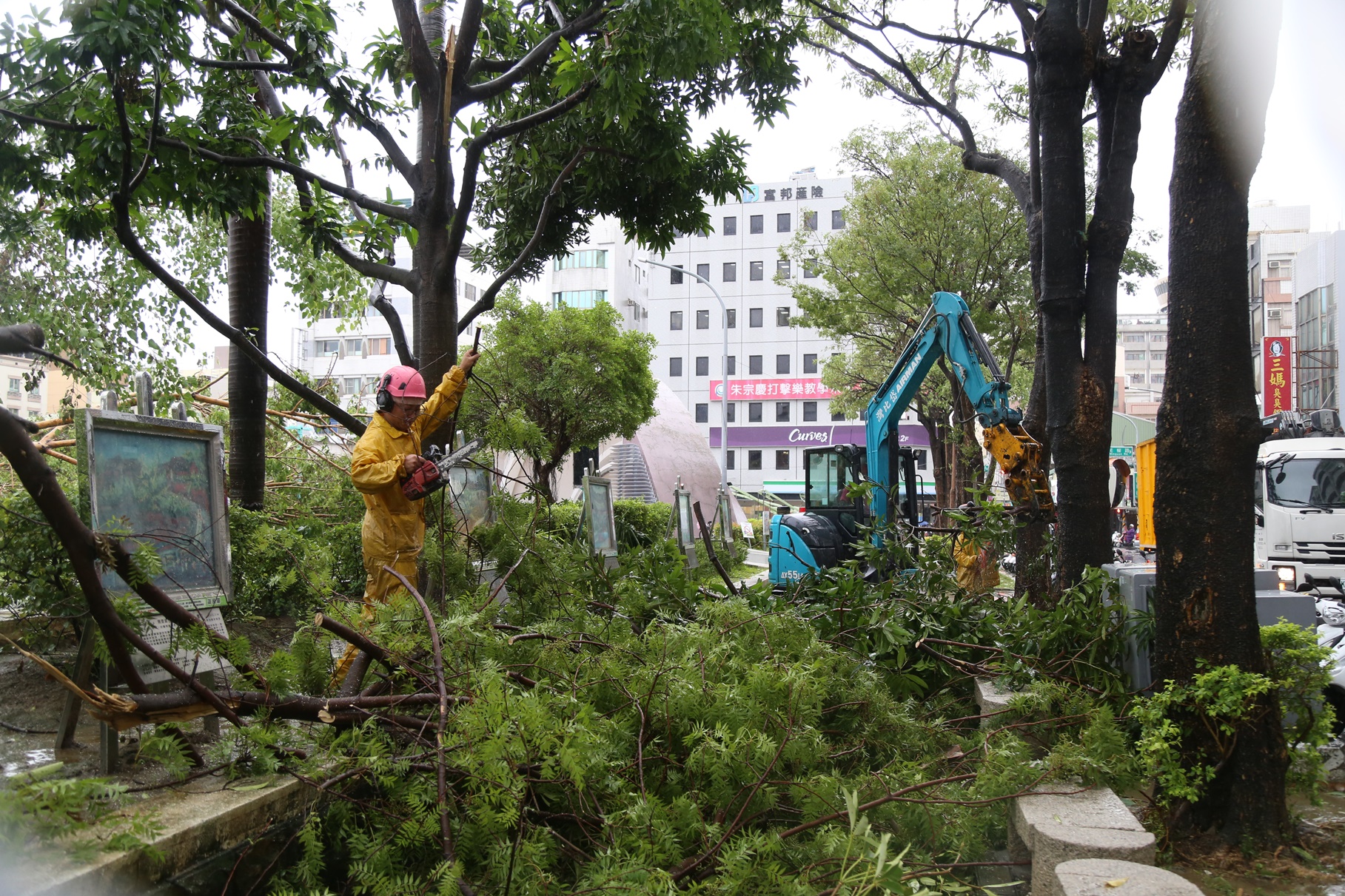 市府建設處長呂獎慧表示,市府全力動員投入災後整建作業,災後首要任務在於主要幹道、重要交通節點及社區聯外道路搶通,確保民眾通行的順暢;本市忠孝路、世賢路及自由路、北港路、彌陀路等路段因路樹倒伏,受災嚴重,各公園也因受強風影響,有大量喬木傾倒、折斷。在市府全力搶修下,已於7月9日完成全市11條主要幹道、15個路段搶通,接下來將搶進各重點公園,進行園內便道樹幹及樹枝清運,讓機具設備可通行使用,下一階段再進行逐步復原。呼籲市民朋友近期因救災作業,將持續封閉公園,請避免前往。