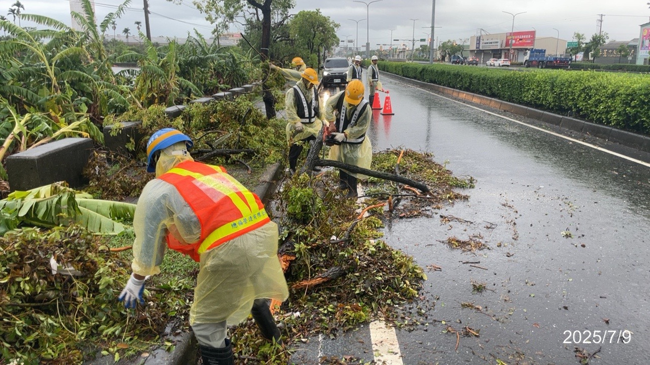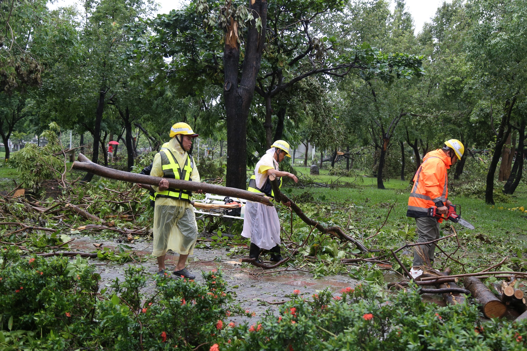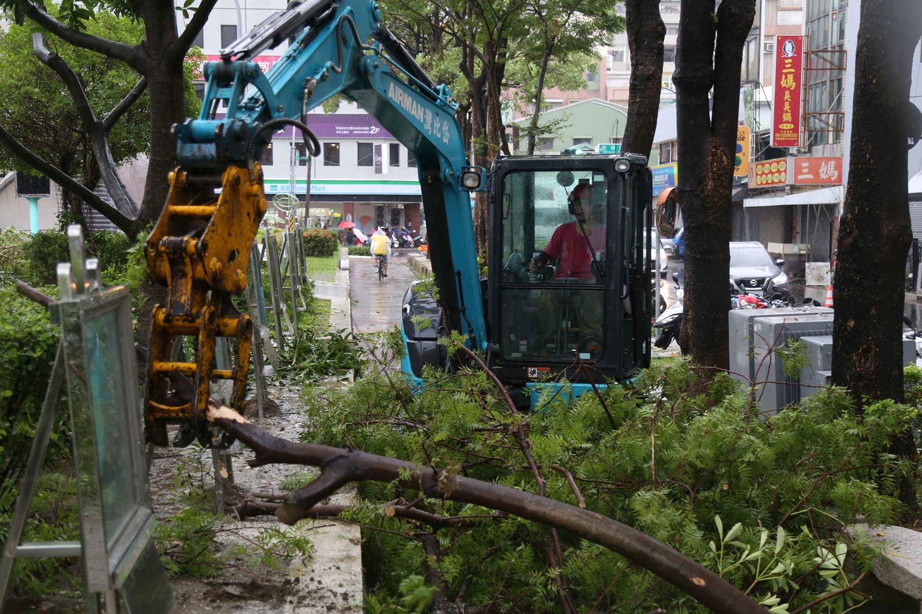 市府建設處長呂獎慧表示,市府全力動員投入災後整建作業,災後首要任務在於主要幹道、重要交通節點及社區聯外道路搶通,確保民眾通行的順暢;本市忠孝路、世賢路及自由路、北港路、彌陀路等路段因路樹倒伏,受災嚴重,各公園也因受強風影響,有大量喬木傾倒、折斷。在市府全力搶修下,已於7月9日完成全市11條主要幹道、15個路段搶通,接下來將搶進各重點公園,進行園內便道樹幹及樹枝清運,讓機具設備可通行使用,下一階段再進行逐步復原。呼籲市民朋友近期因救災作業,將持續封閉公園,請避免前往。