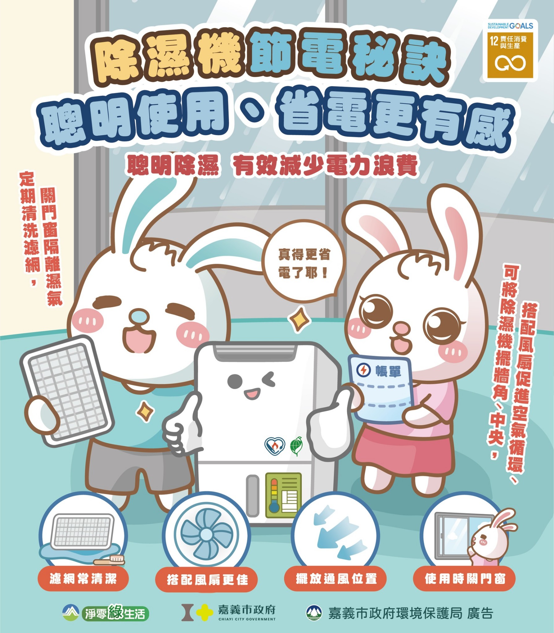 近期高溫持續,空氣濕度亦偏高,嘉義市政府環境保護局提醒可適時啟用除濕機改善室內潮濕情形。但是使用上有技巧若使用方式不當,不僅可能造成電力資源浪費,亦影響設備壽命與除濕成效。掌握正確操作方式,以提升除濕效率並落實日常節能。